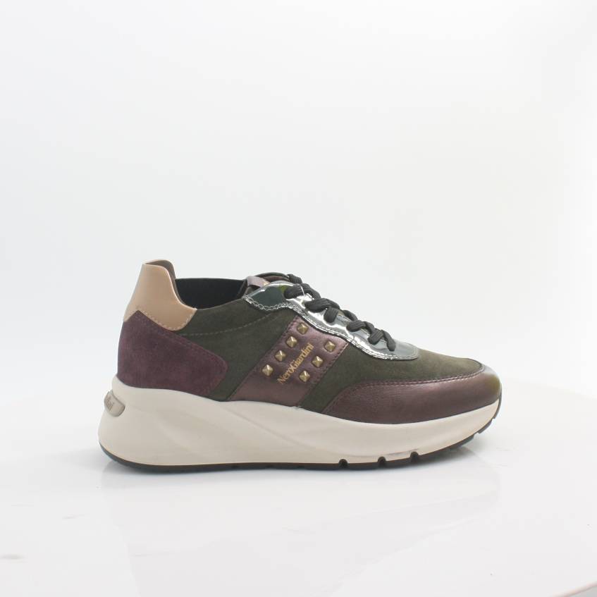 NeroGiardini sneakers, personality and unique style. NeroGiardini shoes are made in Italy, using quality materials and the most advanced manufacturing techniques. Each shoe is the result of expert craftsmanship passed down from generation to generation. All models are designed to offer comfort and versatility at any time of day, from work to a special evening. The NeroGiardini style department is constantly looking for new trends to offer footwear that is always current and original. NeroGiardini also offers a collection of bags, perfectly matching the shoes, for an impeccable total Made in Italy look. The insole with DryGo!® technology absorbs humidity and guarantees comfort and well-being. The Made in Italy production of NeroGiardini shoes is highlighted by the tricolor printed on the soles and on the packaging.