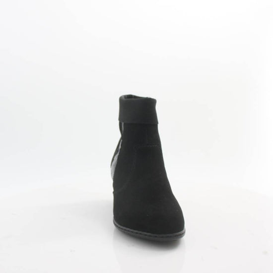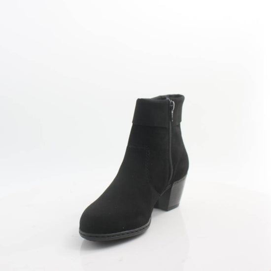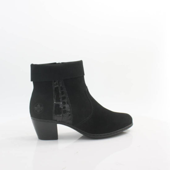 These RIEKER ankle boots combine a luxurious look with maximum comfort. A black upper with a shiny part and a rolled up hem of the upper edge adds elegance to the shoe. A soft insole and a low stable heel with a shock-absorbing sole ensure that you can enjoy a comfortable step all day long. These ankle boots are the perfect choice for women looking for a combination of charm, style and comfort.